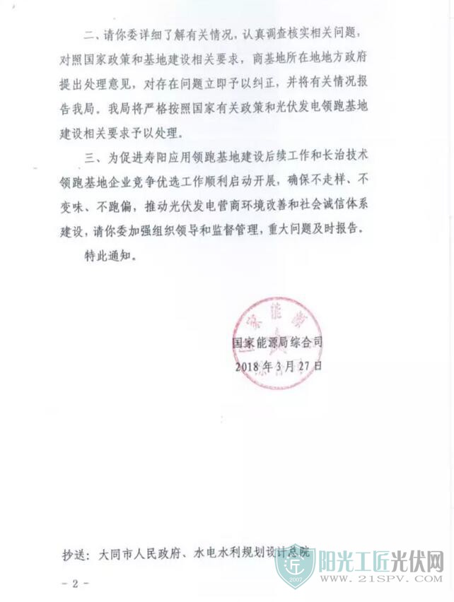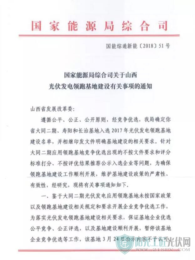 國家能源局發(fā)文否決大同二期領(lǐng)跑者基地中標(biāo)結(jié)