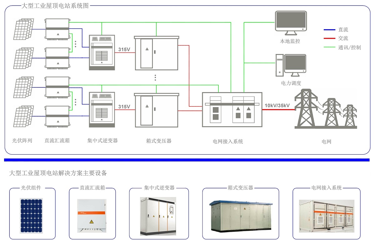 ?根據不同的項目條件和電量上網方式,我們提供0.4kV低壓并網解決方案和10kV 、35kV中壓并網解決方案。