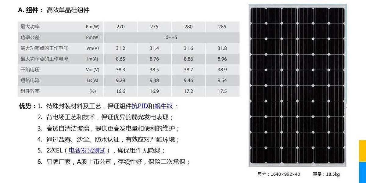 聚輝能源自主研發(fā)的分布式光伏配套產(chǎn)品,為客戶/加盟商提供光伏發(fā)電系統(tǒng)的整體解決方案,涉及系統(tǒng):工商業(yè)光伏發(fā)電系統(tǒng)、戶用家庭光伏發(fā)電設(shè)備、停車場光伏車棚發(fā)電系統(tǒng)、10kV光伏電站電網(wǎng)接入系統(tǒng)、自動化控制系統(tǒng)等,產(chǎn)品系列包括:太陽能電池板、并網(wǎng)逆變器、離網(wǎng)逆變器、儲能逆變器、直流匯流箱、交流匯流箱、并網(wǎng)控制柜、光伏支架系統(tǒng)、車棚支架系統(tǒng)等。公司嚴格控制產(chǎn)品的質(zhì)量,確保系統(tǒng)可靠、穩(wěn)定工作25年以上。